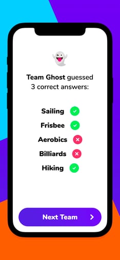 Create as many teams as you wish and decide on who’s in which. Then decide on a topic, set the in-app timer, and hit Play! The app then tells you which team’s turn it is. This team decides on an actor who is not allowed to talk during their performance. The rest of the team is guessing. The actor is allowed to pass on words if his team wasn’t able to guess the correct word after five seconds. After the timer hits 0:00, the team gets one point for every correct answer and hands the phone to the team that’s up next. The winner is the team with the most points!
